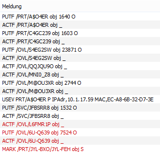 Spalte vier Meldung zeigt schliesslich die Übersetzung der eigentlichen Veränderung in ein auswertbares Format. Die Meldung beginnt mit der Bezeichnung des betroffenen Objekts als Pfad beginnend mit dem Container, über die Subcontainer bis zum Klartextnamen des Objekts. Nach dem Minuszeichen folgt dann die Information über die vorgenommene Änderung.