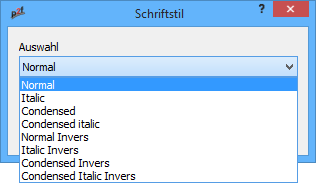 Das print2forms-Systems bietet alle im PCL definierten Schriftstile an, unabhängig davon, ob die ausgewählte Schriftart in diesem Schriftstil auf dem aktuellen Drucker oder in der Schriftenbibliothek auch tatsächlich verfügbar ist.