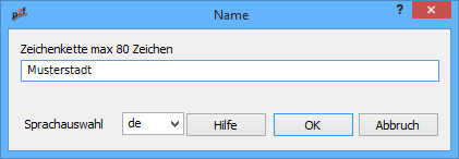 Bei der Eingabe des Namens kann die Sprache ausgewählt werden, für die der Name gelten soll. Wird der Name nur in Deutsch eingegeben, so gilt der gleiche Name automatisch für das Englische. Sind mehr als zwei Sprachen installiert, wird als Standard der englische Name übernommen, soweit dieser verfügbar ist.
