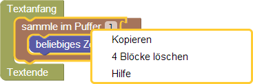 Statt die Taste Entfernen zu drücken kann man auch mit der rechten Maustaste ein Kontextmenü aufrufen und in diesem den Menüpunkt 4 Blöcke löschen auswählen. |