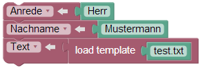 In diesem Beispiel wird der Block zum Laden von Templates verwendet. Daher werden Ersetzungen durchgeführt und der in „Text“ abgelegte Text lautet nun wie folgt: