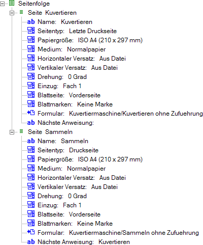 Zusätzlich bieten einige Kuvertiermaschinen auch noch weitere Papierfächer an, aus denen Blätter beim Kuvertieren zum Dokument hinzugefügt werden können. Die Steuerung solcher externen Zuführungen ist meist mit in die Marke für das Kuvertieren hineinkodiert. Auch dies ist mit den Bordmitteln von print2forms nicht ohne weiteres zu realisieren.