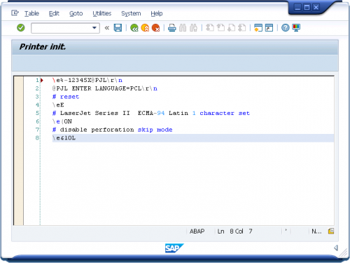 Eine mögliche modifizierte Version der Printer Init-Sequenz wäre dann etwa die folgende: