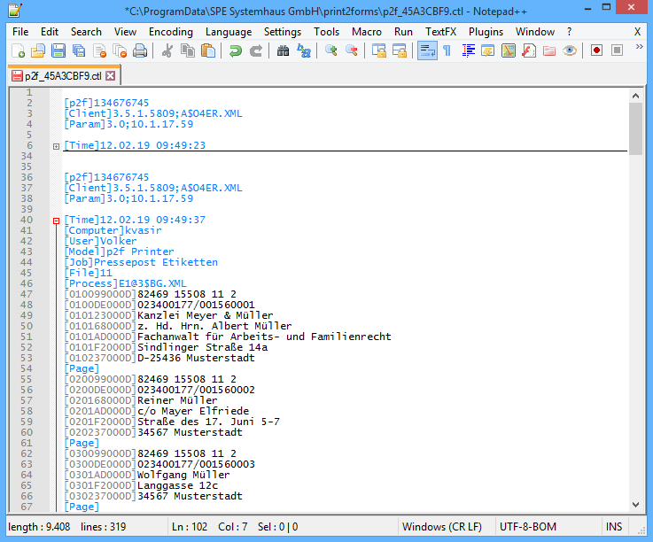 Auch für die Anzeige von print2forms-Indexdateien wurde eine eigene Sprachdefinition für Notepad++ erstellt. Auch diese ist als benutzerdefinierte Sprache im Notepad++ zu importieren. Anschlies­send steht im Sprachmenü die neue Sprache p2f-index zur Verfügung. Der Einfachheit halber ist auch gleich die Dateiendung ctl mit dieser Sprache verknüpft. 3)