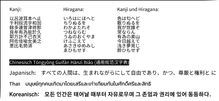 - Asiatische Zeichensätze (Unicode)