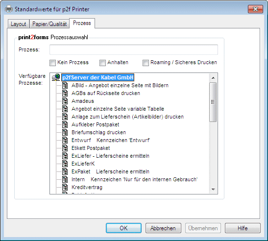 - Setzen der Standardwerte für das Drucken